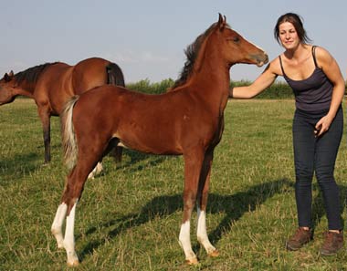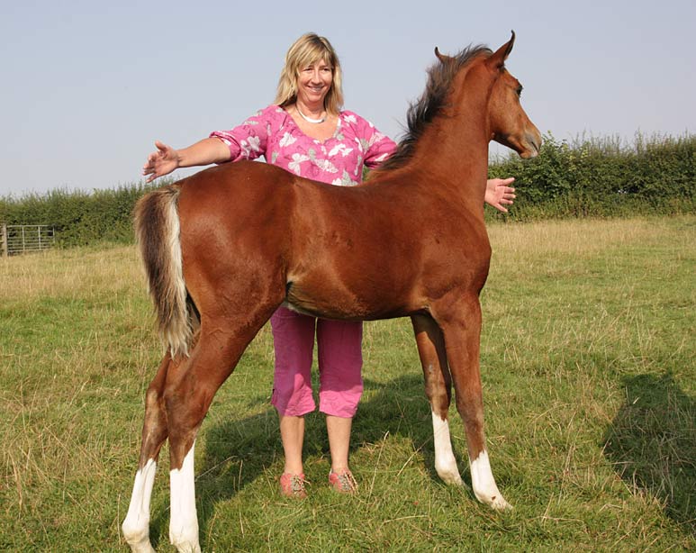This smart colt born early May 2014 is the third bay colt that Palma Benay has produced to boost the Crabbet gene pool in Britain. Dandini is by the 2012 pure Crabbet champion Marbon Masadi, whose temperament is as gentle as Palma's. Dandini has progeny in Britain, Spain and Sweden and now stands at the studs of Ingela Brinkefeldt and Anne Karlsson.
