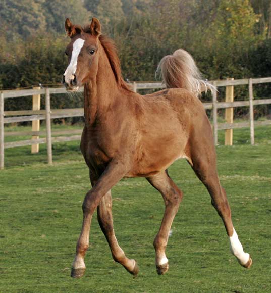 Typey chestnut colt by Sambist out of Jazmyn; born June 2008. We expect great things from this elegant youngster as both parents are AHS Premium horses. Sakr's stable name is Minstrel.