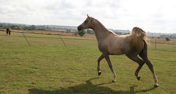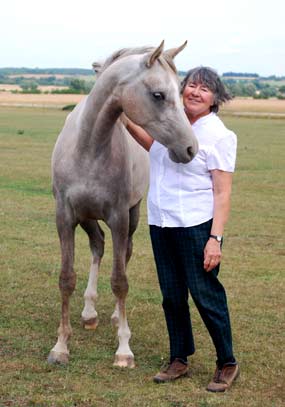 Silver Sunbeam is an exquisite feminine grey mare, our first from Binley Prince Salim out of the lovely old Crabbet mare PHA Silver Heart, who was kindly loaned to Gadebrook by Mary O'Rourke and Jean and David Peck. When Sunbeam was on loan to Spirit Arabians she produced a striking filly for them by their pure Crabbet champion Marbon Masadi in 2014, called SA Shimmering Spirit, Youngstock Champion at the 2016 Crabbet show at Equifest. Sunbeam has been sold, in foal to Indian Idyll, to OSO Arabians in Australia. With her bloodlines and movement, she will make a valuable contribution to their Crabbet gene pool. We wish them every success with this lovely mare.